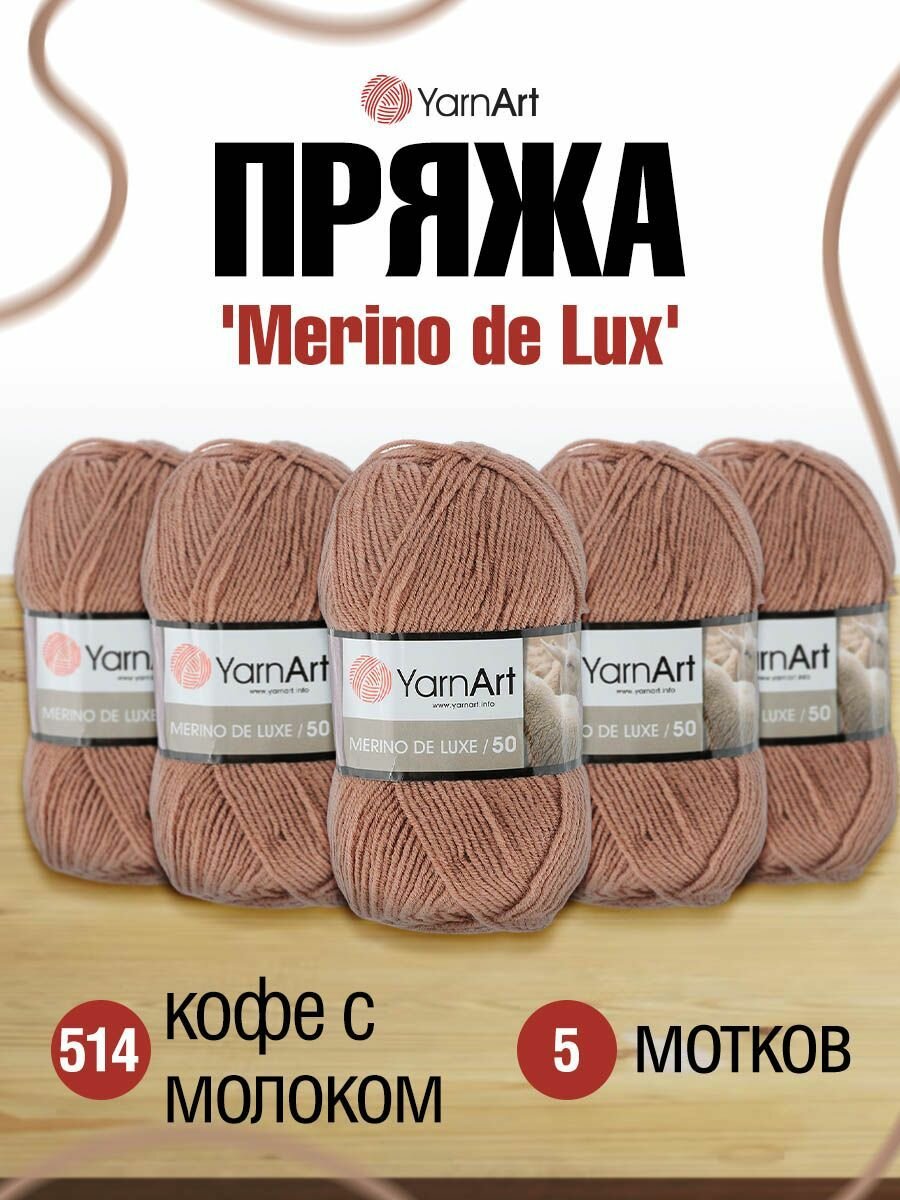 Пряжа для вязания YarnArt 'Merino de Lux' 100г, 280м (50% шерсть, 50% акрил) (514 кофе с молоком), 5 мотков информация: