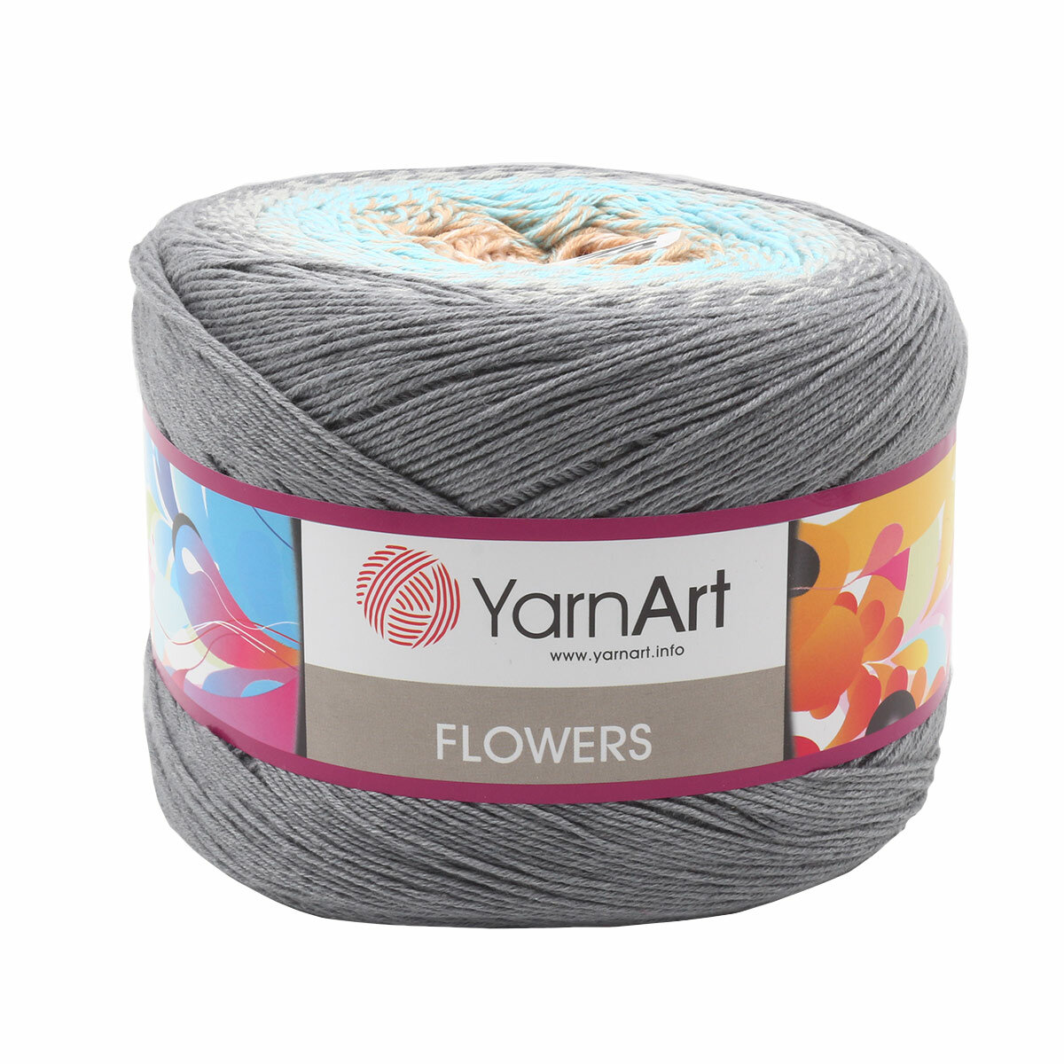 Пряжа YarnArt Flowers серый-голубой-желтый (287), 55%хлопок/45%акрил, 1000м, 250г, 1шт