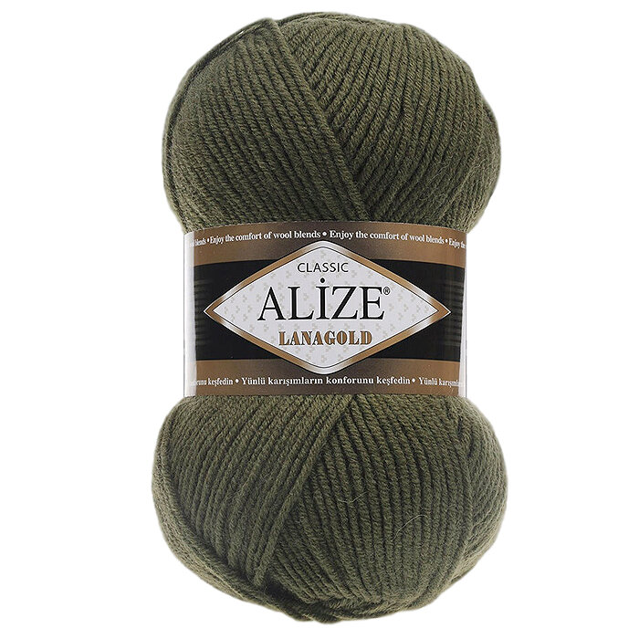 Пряжа для вязания ALIZE LANAGOLD 800 (Лана голд 800) - 5 мотков, 29 хаки, состав: 49% шерсть, 51% акрил. Вес мотка: 100 гр, длина нити: 730 м. 1 199 ₽