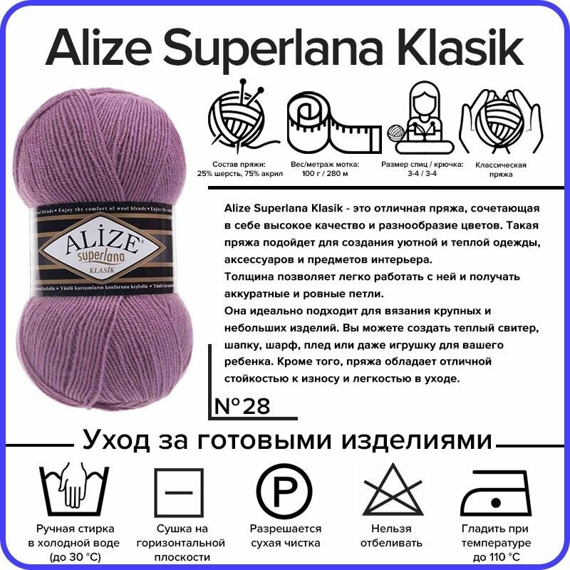10 цен на Пряжа Alize Superlana Klasik 28 сухая роза, 100 г, 280 м, 5 штук