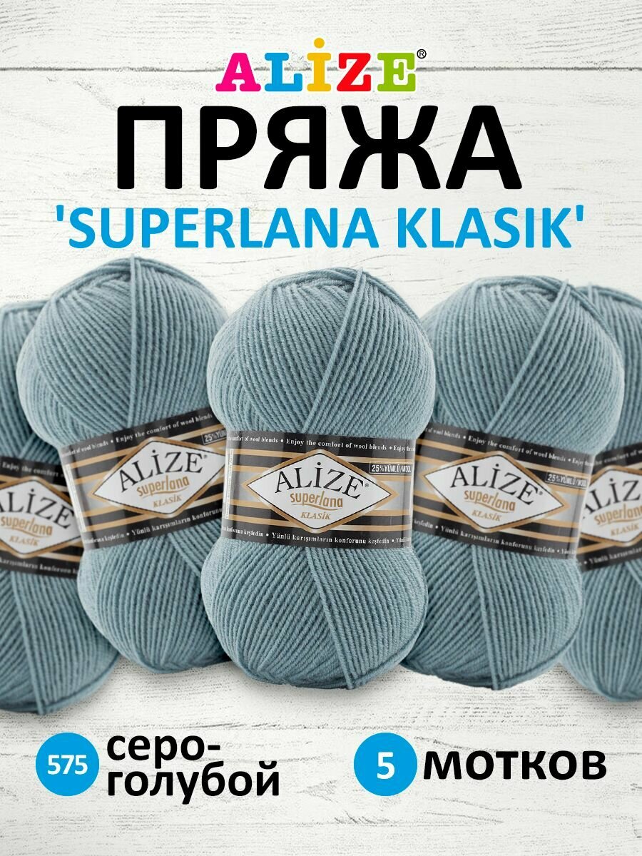 Пряжа ALIZE SUPERLANA KLASIK, пепельно-сиреневый - 505, 25% шерсть, 75% акрил, 5 мотков, 100 г, 280 м.