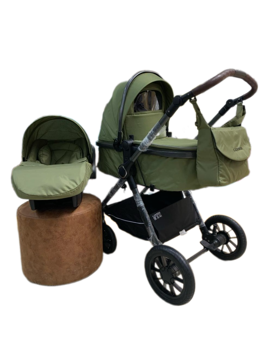 Коляска детская Luxmom 601А 3в1 с рождения и до 3х лет , зеленая