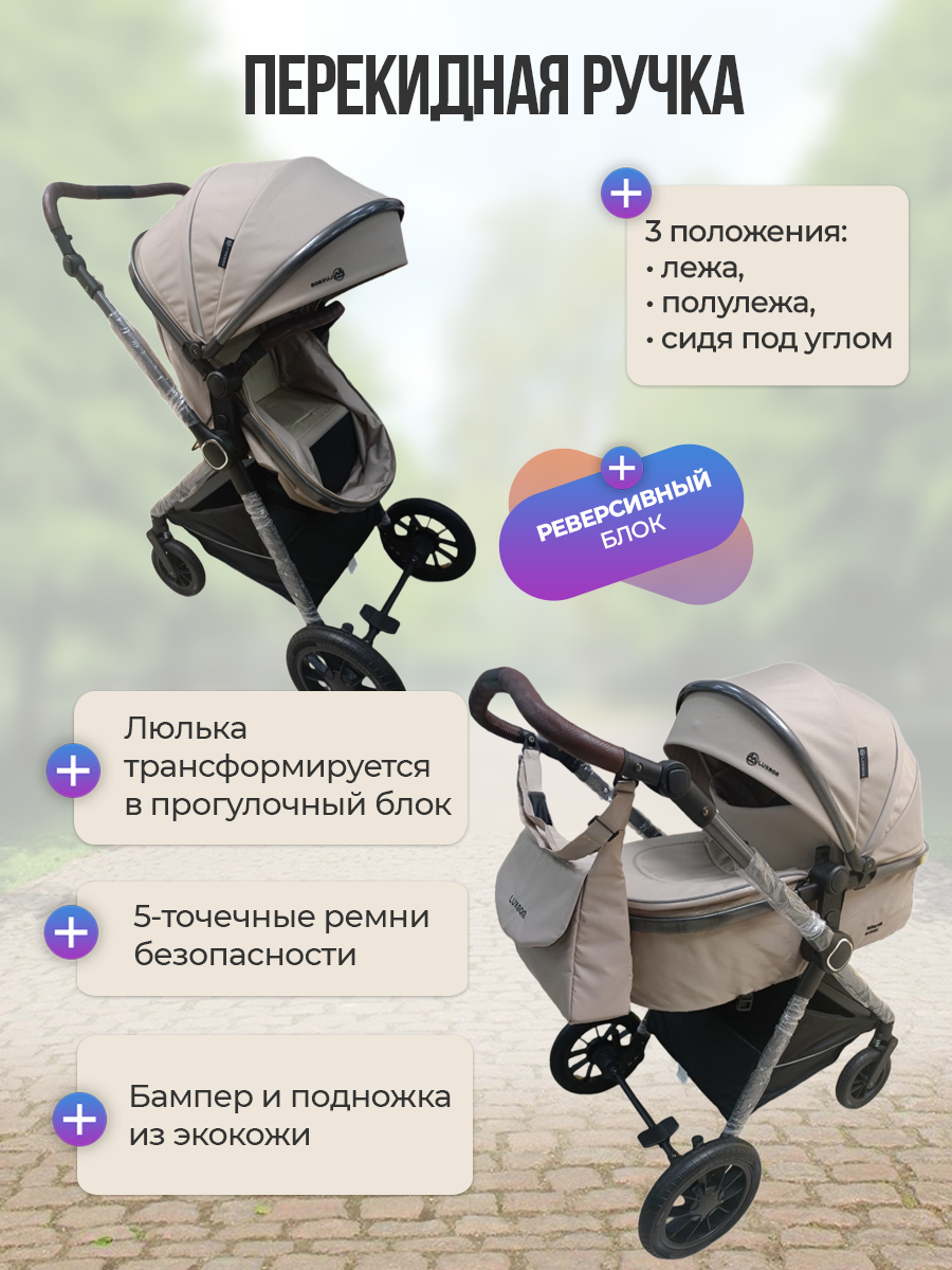 Детская коляска трансформер с перекидной ручкой Luxmom A4 3в1 хаки (бежевый) 26 299 ₽