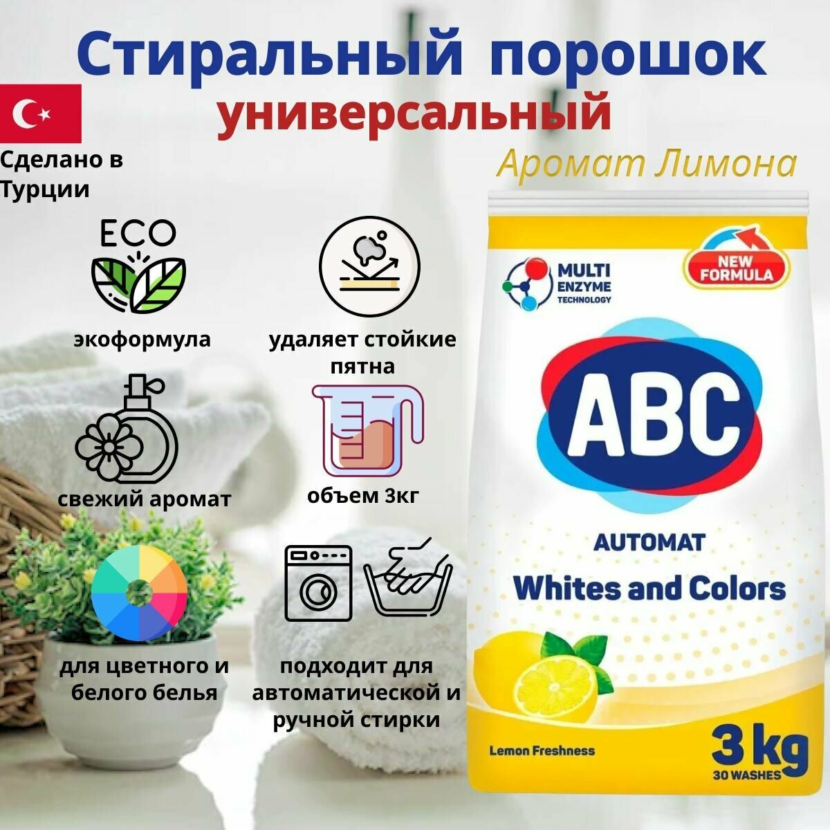 Стиральный порошок АВС Универсальный, 3 кг. / Аромат Лимона/ АБЦ Турция информация: