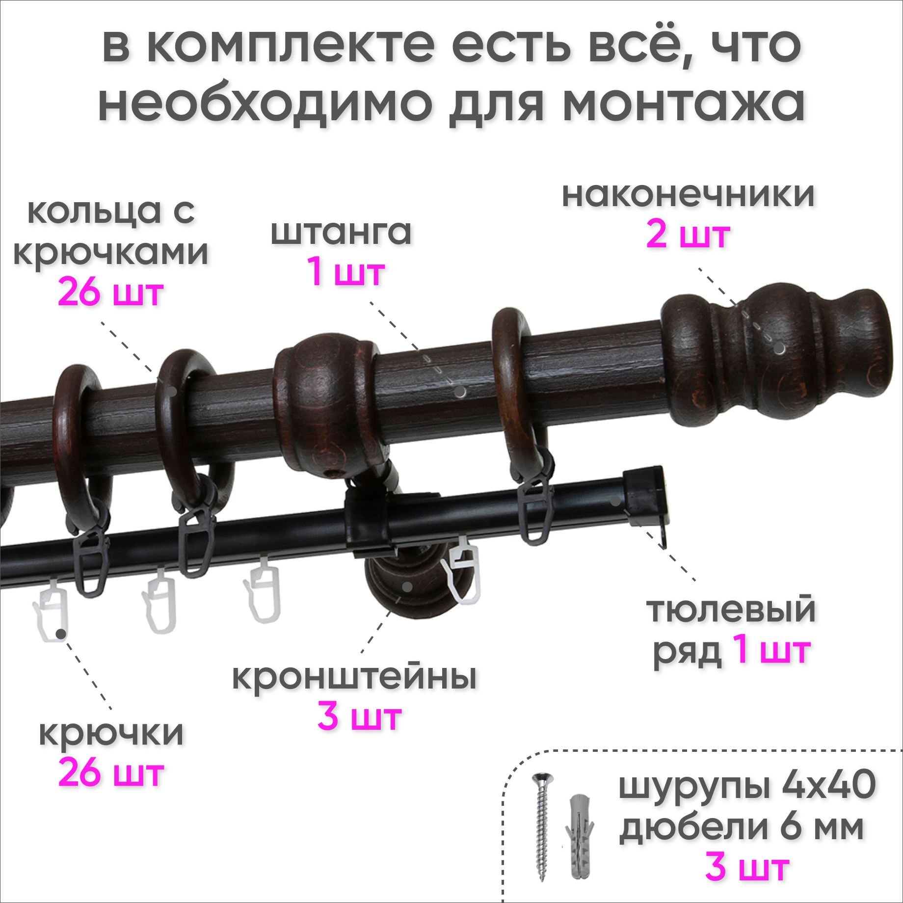 Карниз для штор круглый двухрядный из дерева Темный орех 250 см