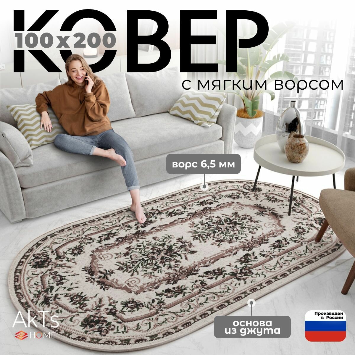 Ковер на пол AkTs комнатный 100 на 200 овальный в гостиную, зал, спальню, кухню прихожую, кабинет, комнату информация: