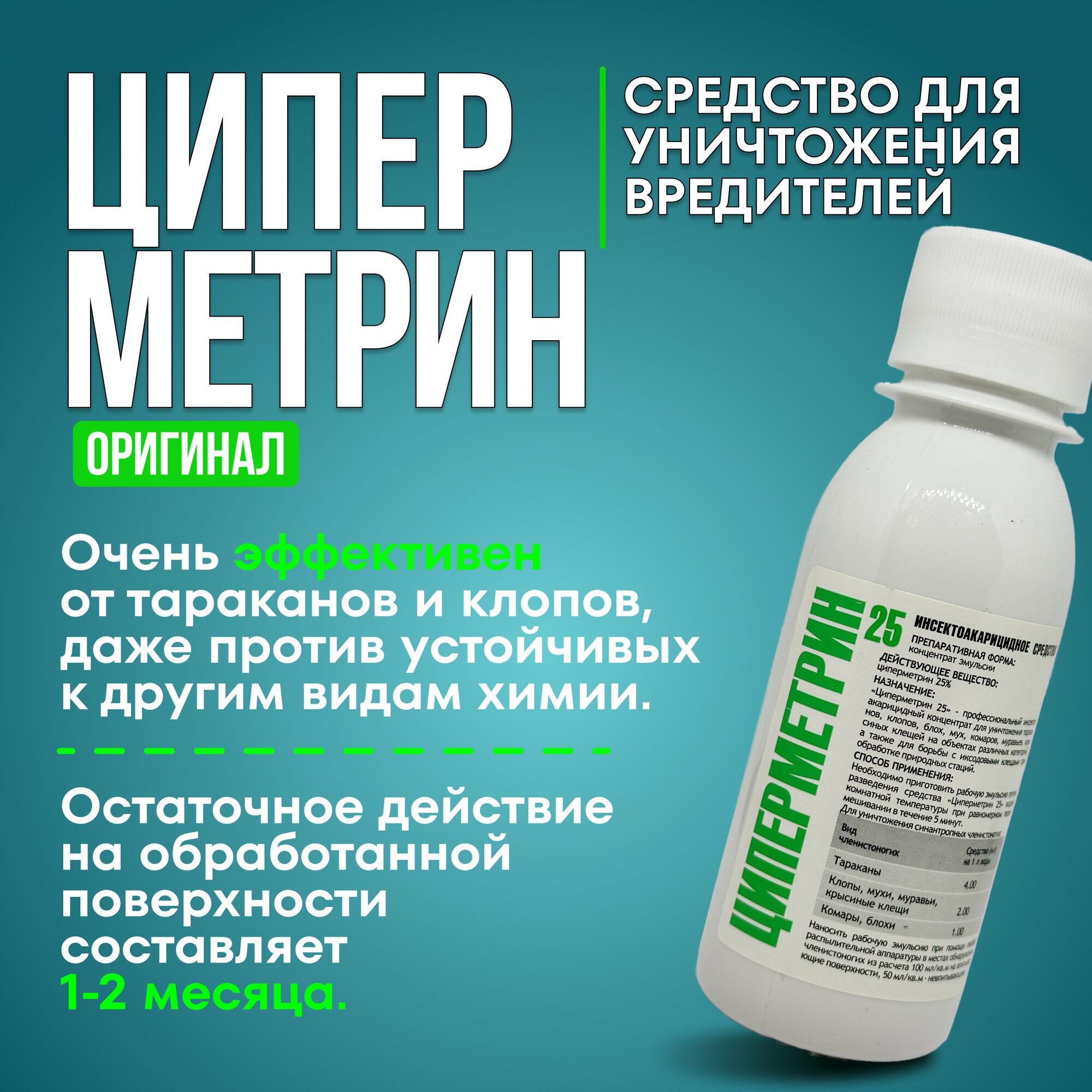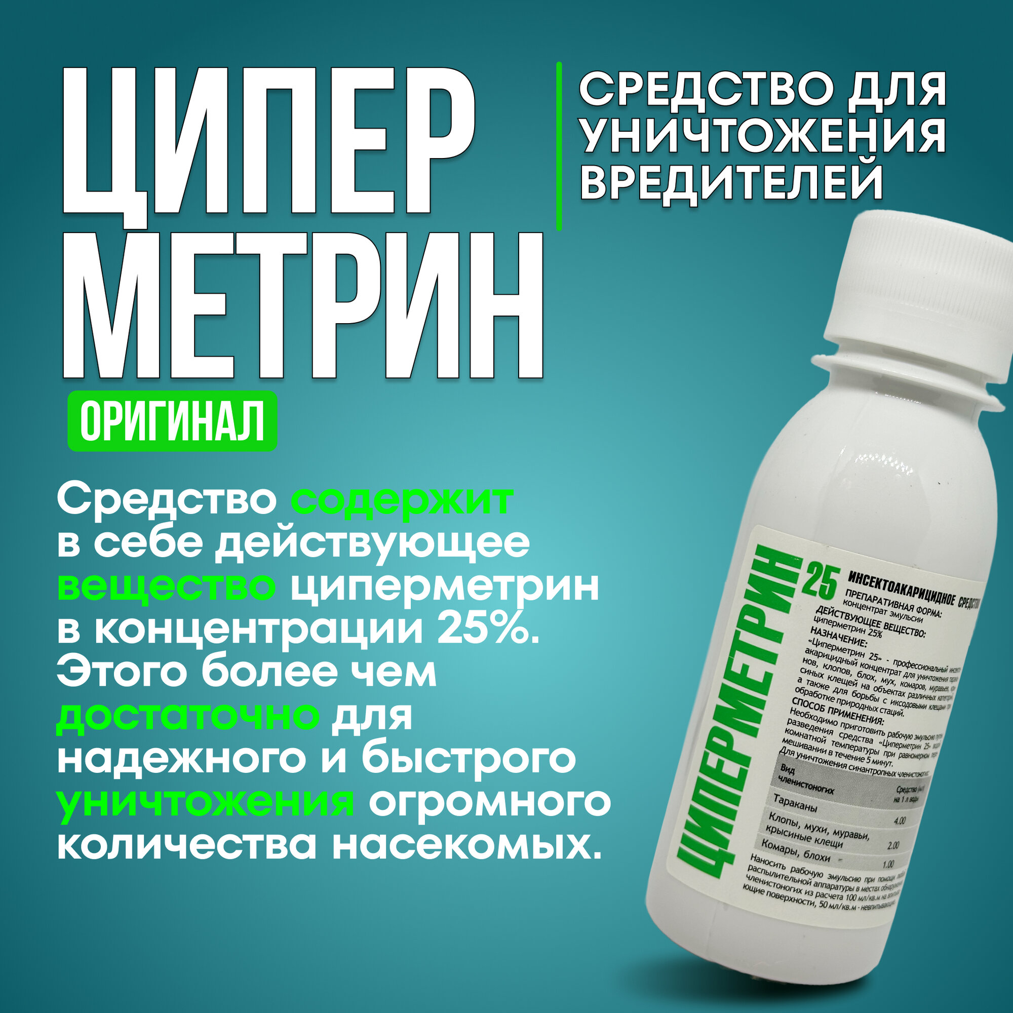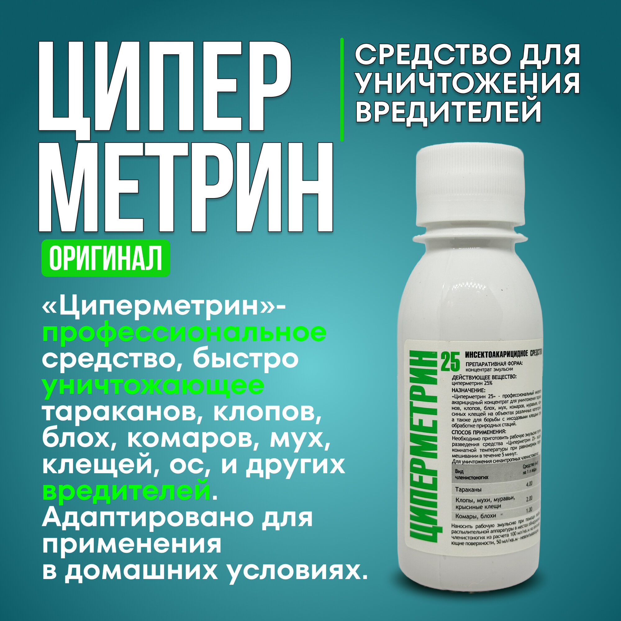 Циперметрин 25 средство от клопов, тараканов, клещей, ос, мух, комаров, 100мл