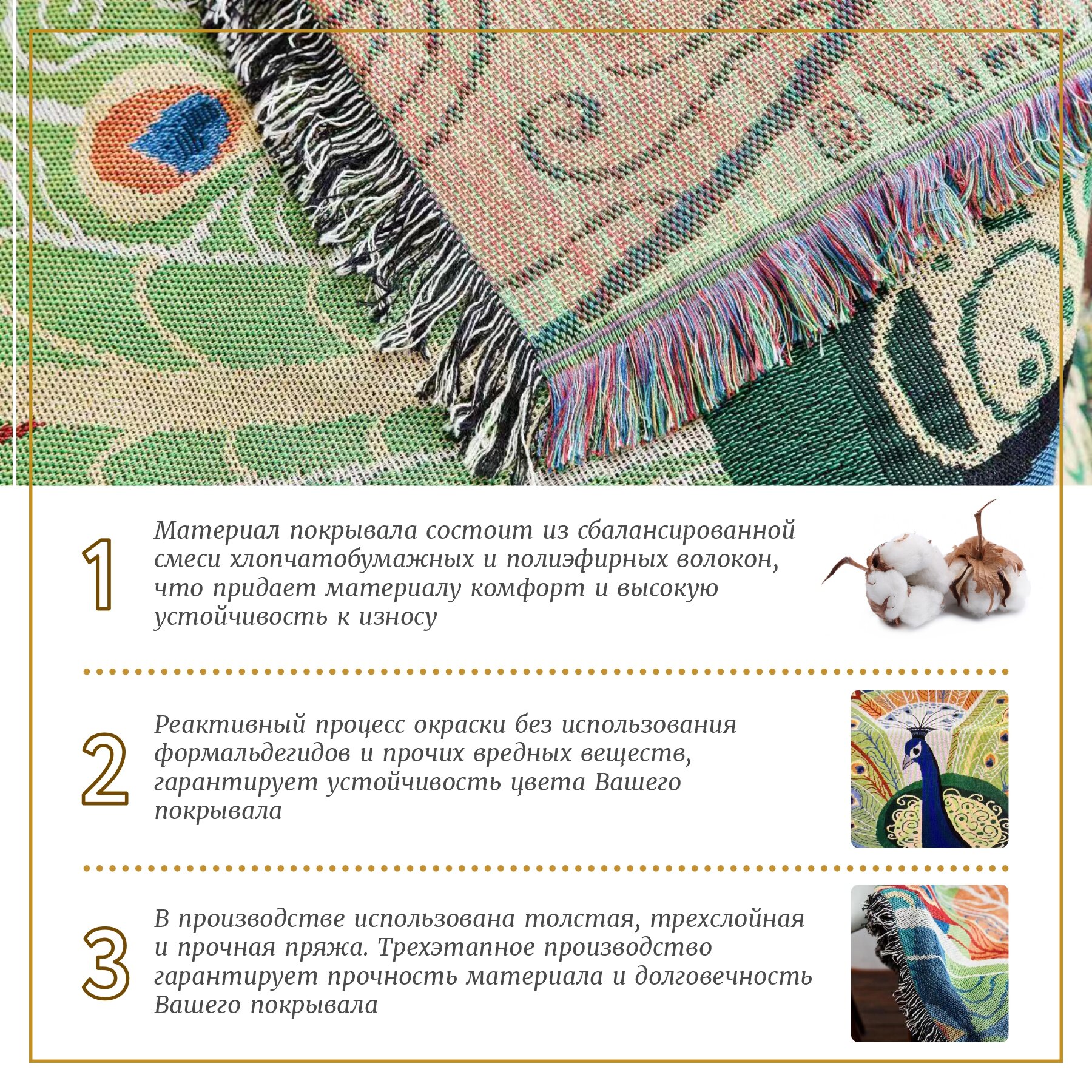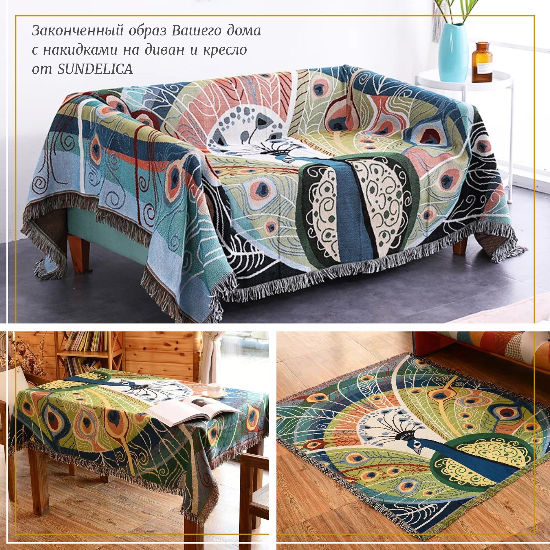 Отзывы на Покрывало Sundelica, накидка на диван или на кровать, размер 160х220, дизайн Павлин, с бахромой