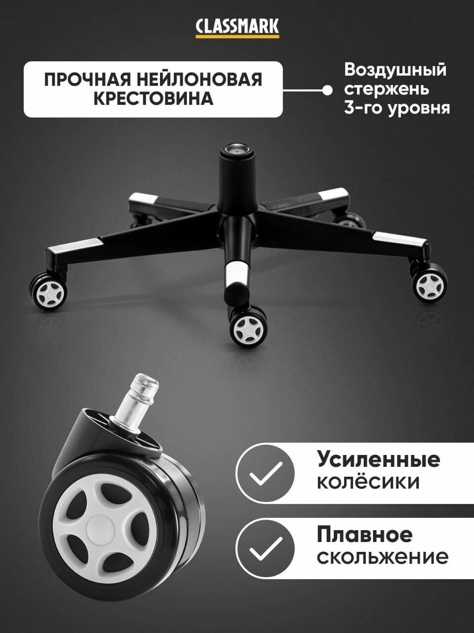 Кресло компьютерное игровое Classmark экокожа, геймерский стул, до 130 кг, регулируемый, черный 20 452 ₽