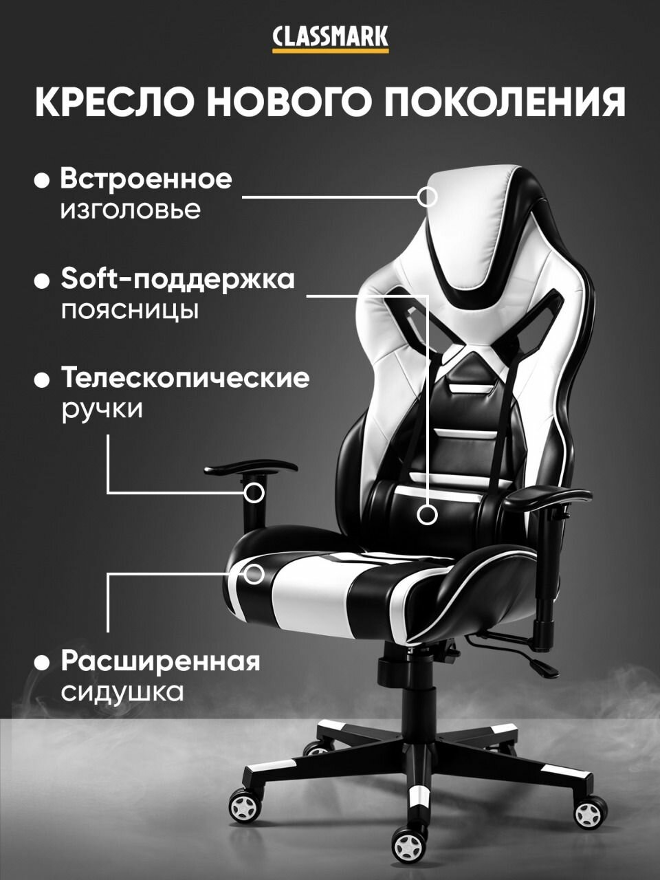 Игровое компьютерное кресло Classmark, экокожа, эффект памяти, с подлокотниками 18 815 ₽