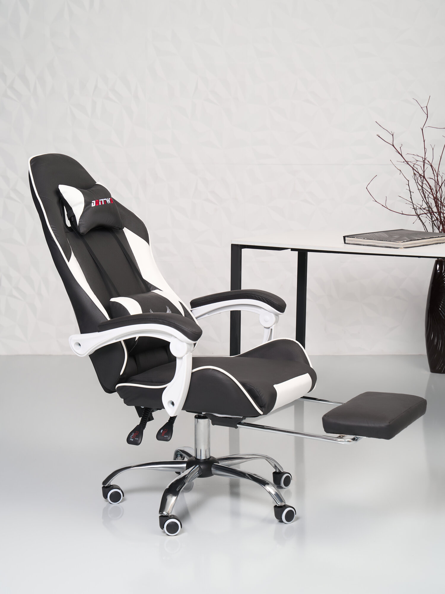 10 цен на Кресло игровое компьютерное Kalev-308F цвет черный с белыми вставками из искусственной кожи. Подножка в комплекте.