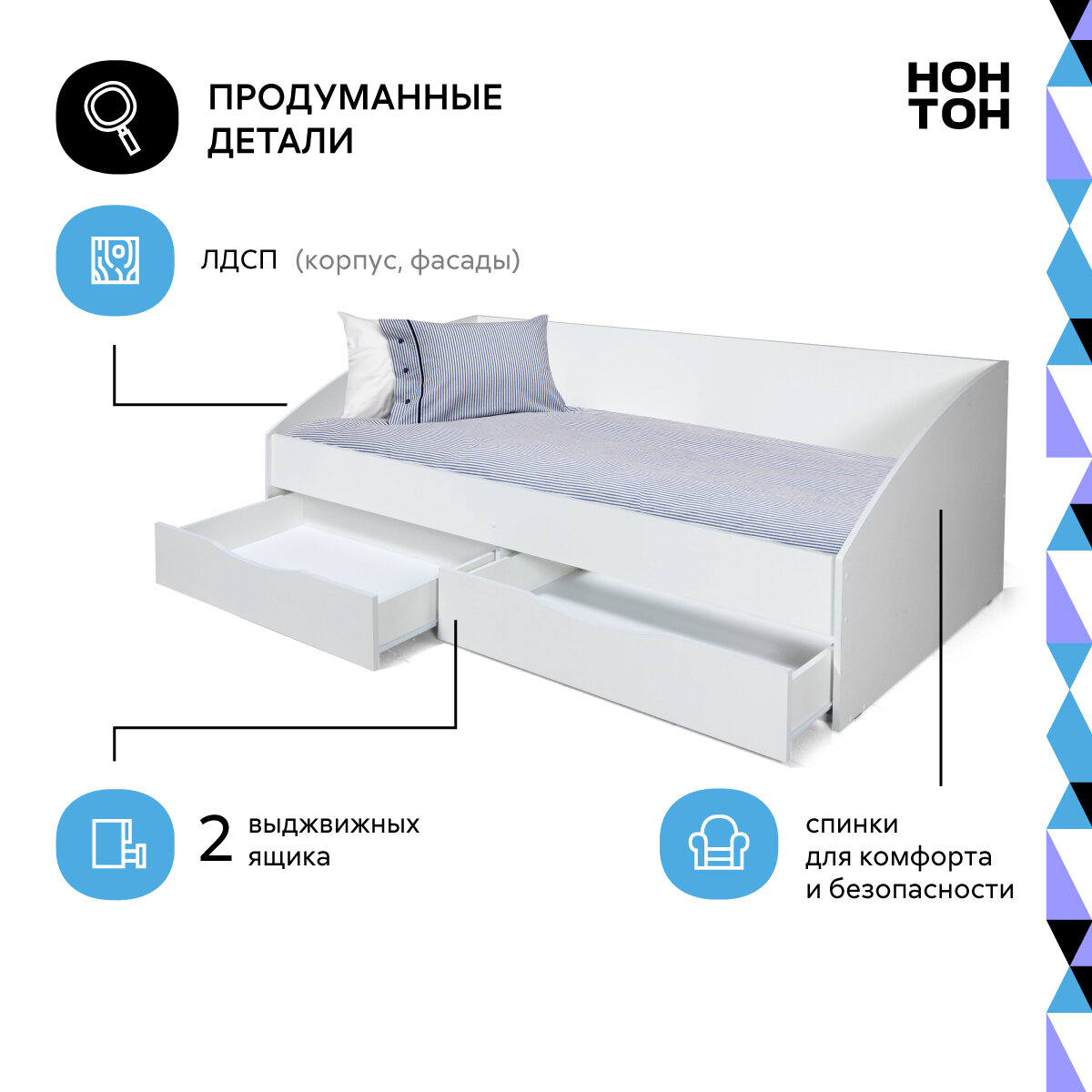 10 цен на Кровать детская с ящиками Нонтон Фея-3, 90*200 см, белый