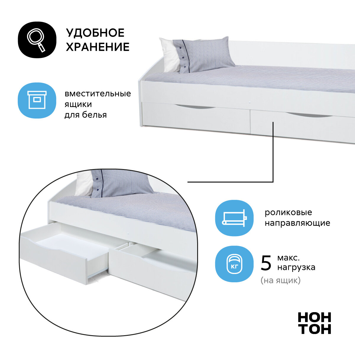 | Особенности | для детей, с ящиком для белья |