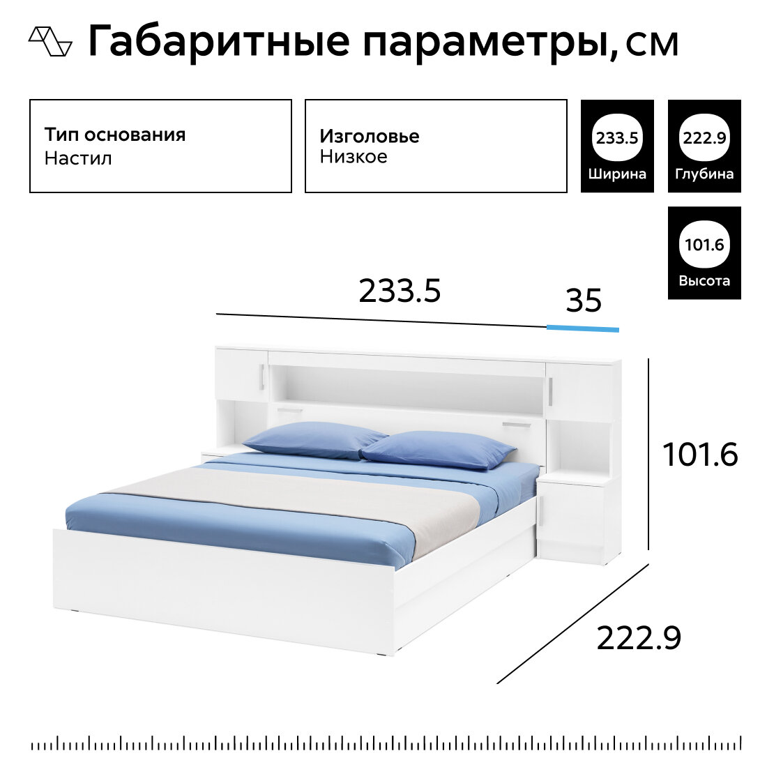 Кровать Миф Бася 1.6 м с надстройкой и тумбами белый 222.9х233.5х101.6 см 16 490 ₽