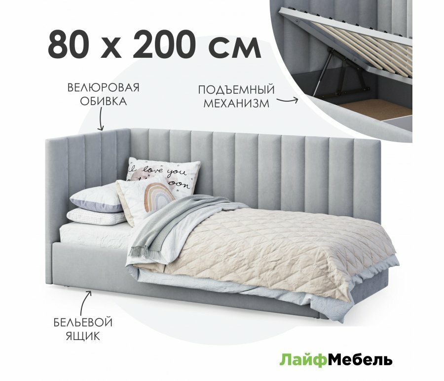 10 цен на Тахта Лайфмебель Каролина-3 80х200 с ПМ велюр bingo ash