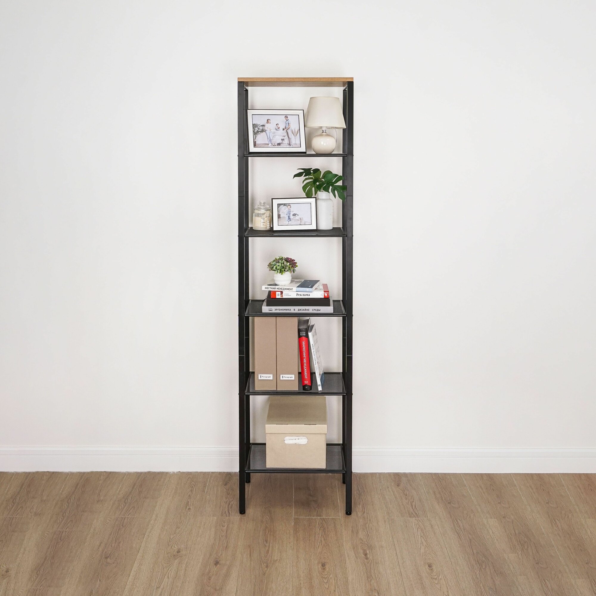 Стеллаж Айсберг Лофт 40/6 / Черный/ с полками дуб крафт табак/ Для дачи/ для дома/ для книг/ в офис
