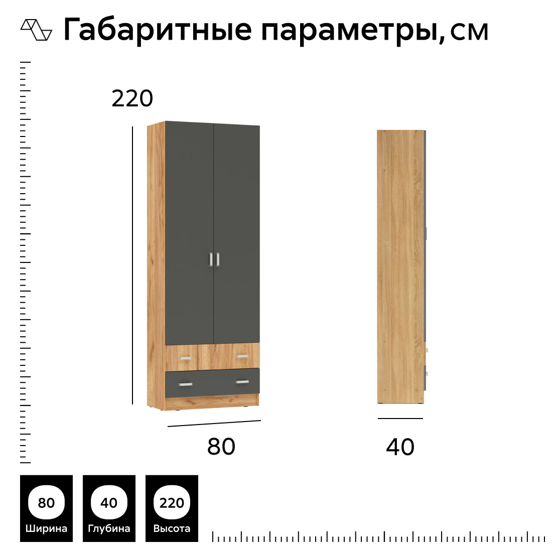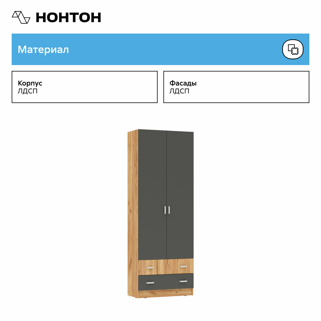 Шкаф для одежды с ящиками детский Нонтон Мартина, графит / дуб крафт, 80 см информация: