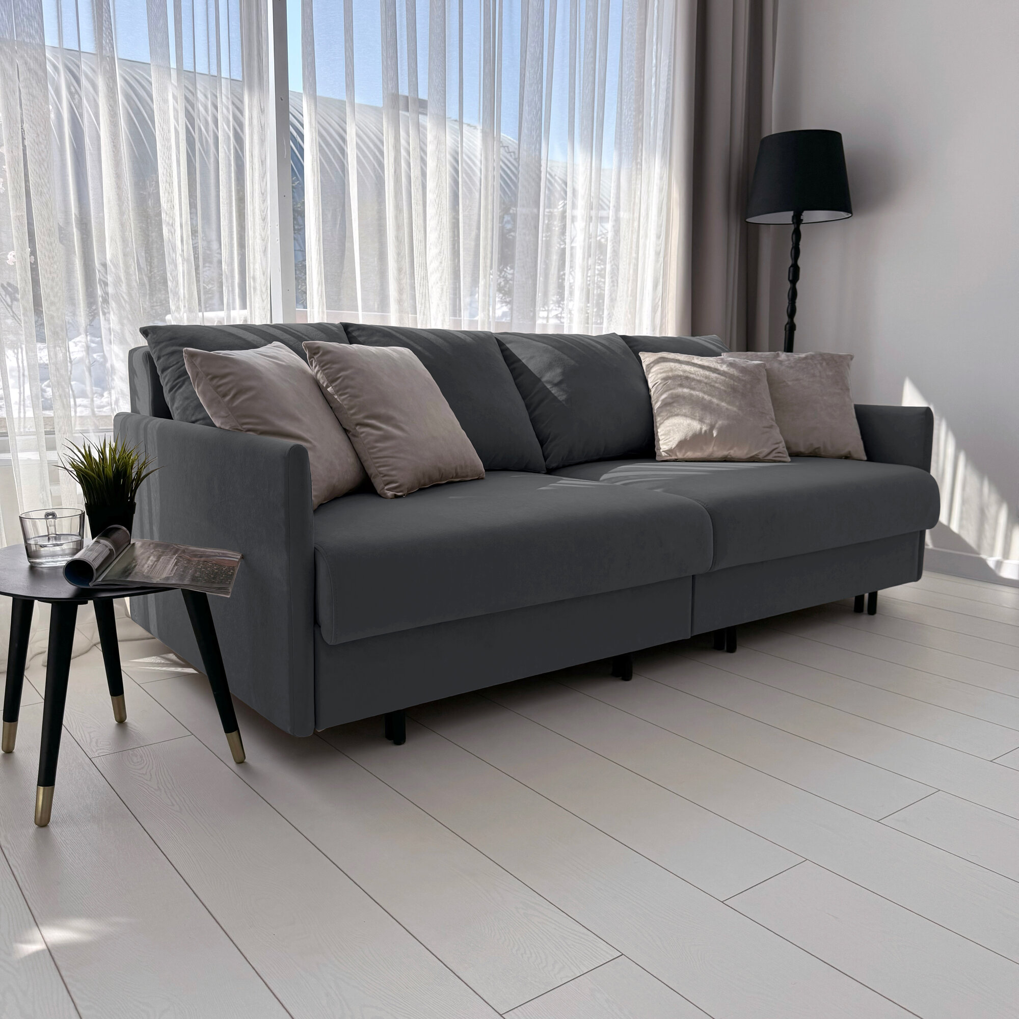 10 цен на Диван-кровать Redsofa Модена 210см графит Teddi. Раскладной прямой диван со съемными чехлами Редсофа, для дома и офиса (Мебельный гарнитур бытового назначения)