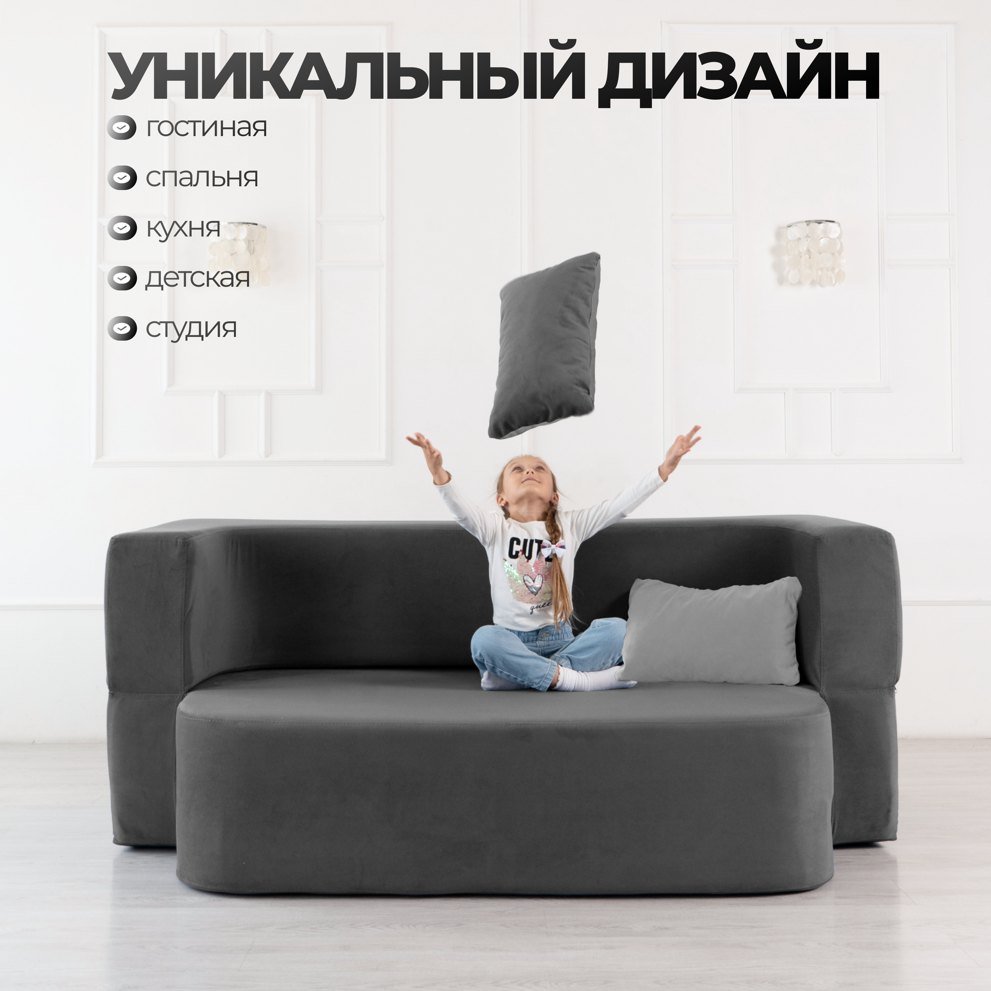 10 цен на Диван раскладной двухместный Дадли Лайт 195*105*80 см, трансформер, бескаркасный, со спальным местом 195*130 см, серый