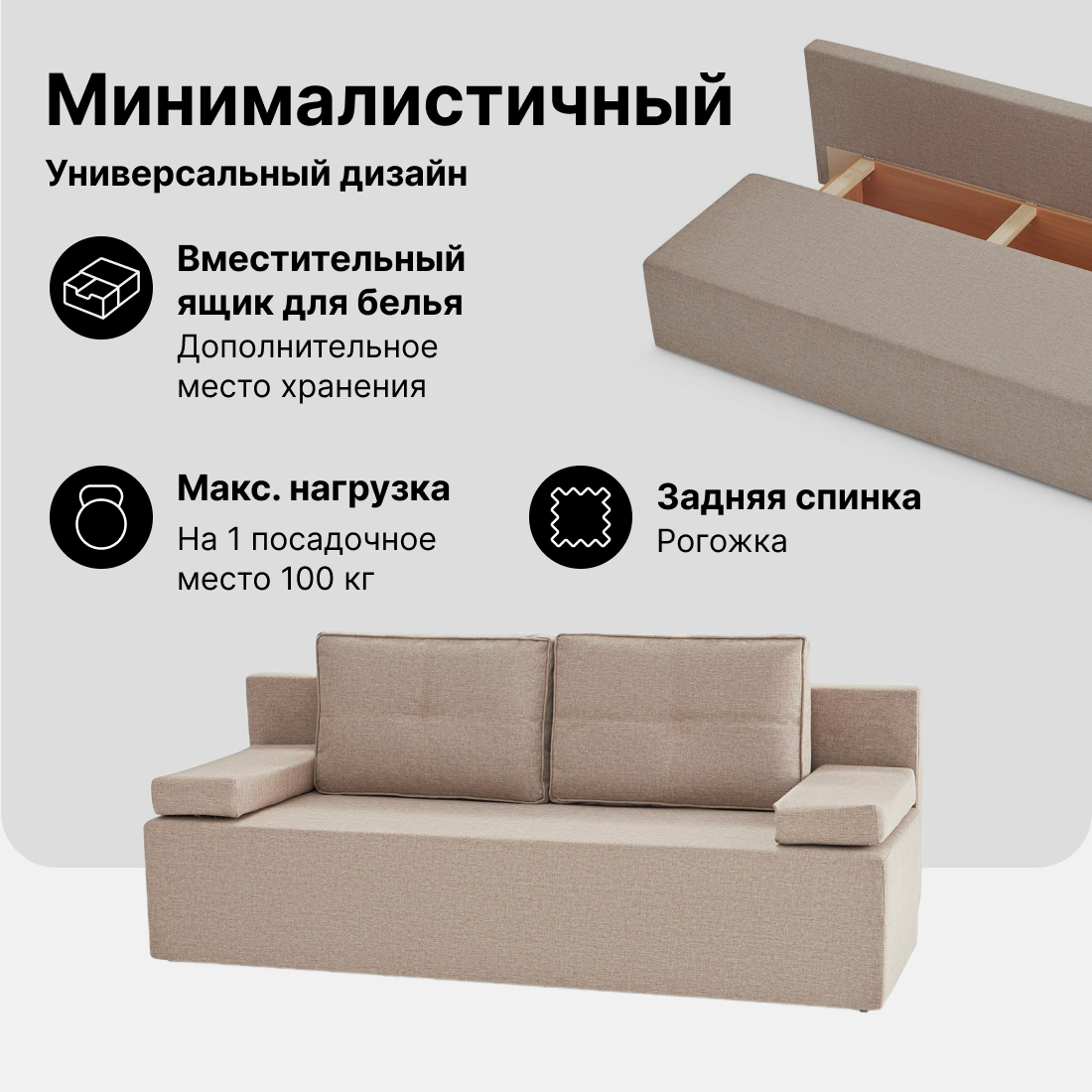 Диван-кровать Hoff Малага, прямой, 195х80х78 см, еврокнижка, цвет бежевый информация: