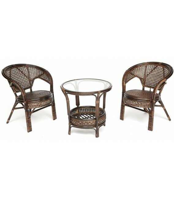 10 цен на TetChair Террасный комплект PELANGI (стол со стеклом + 2 кресла), грецкий орех (без подушек)