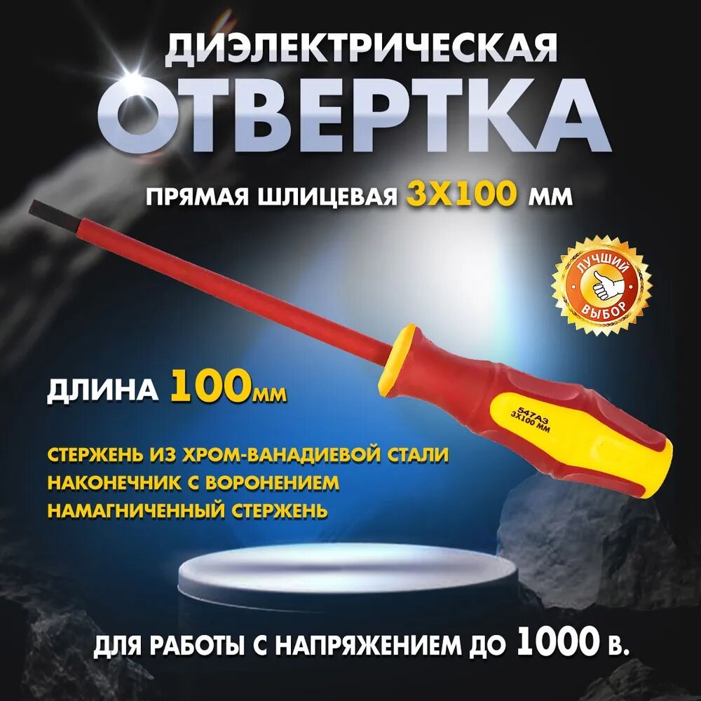 Отвертка диэлектрическая прямая шлицевая 3х100мм информация: