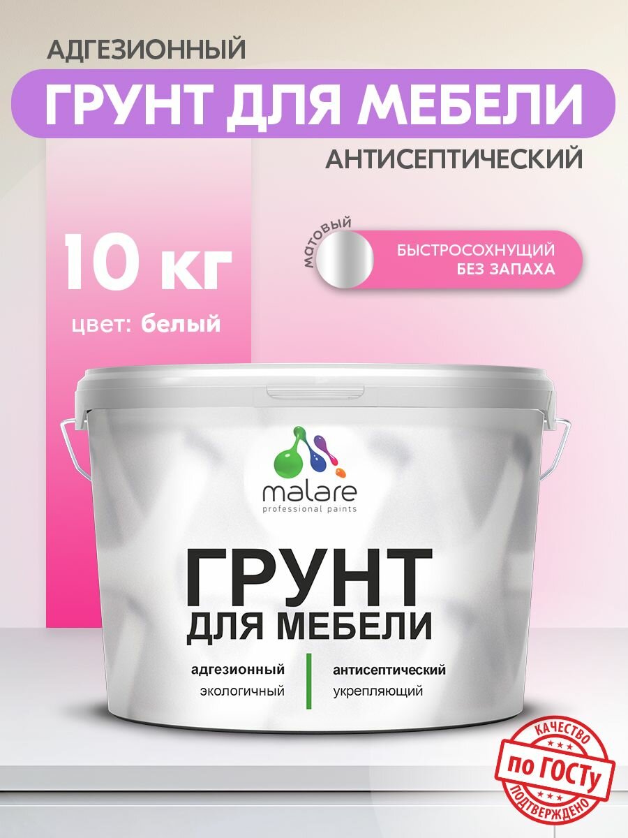 Грунт для мебели Malare акриловый адгезионный укрепляющий быстросохнущий без запаха, белый, 10 кг. информация: