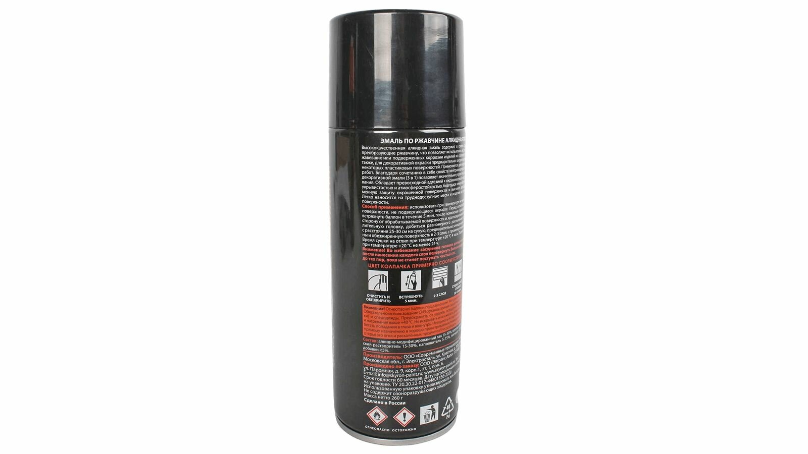 Грунт-эмаль по ржавчине черная RAL 9005 аэрозоль 520мл SKYRON информация:
