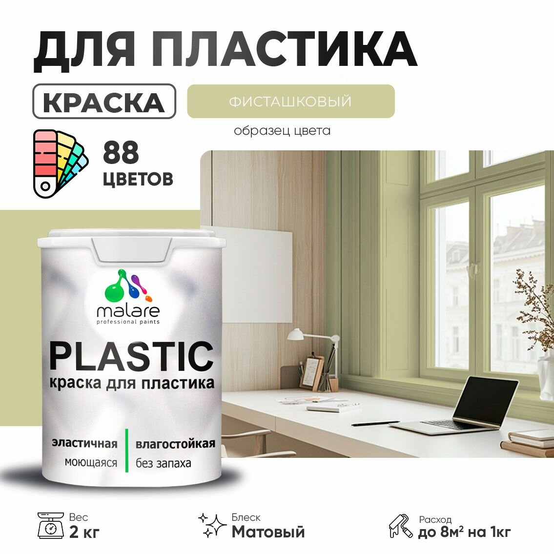 Акриловая краска для пластика Malare Plastic для пенопласта ПВХ сайдинга, для подоконников и откосов, быстросохнущая без запаха, матовая, фисташковый, 2 кг информация:
