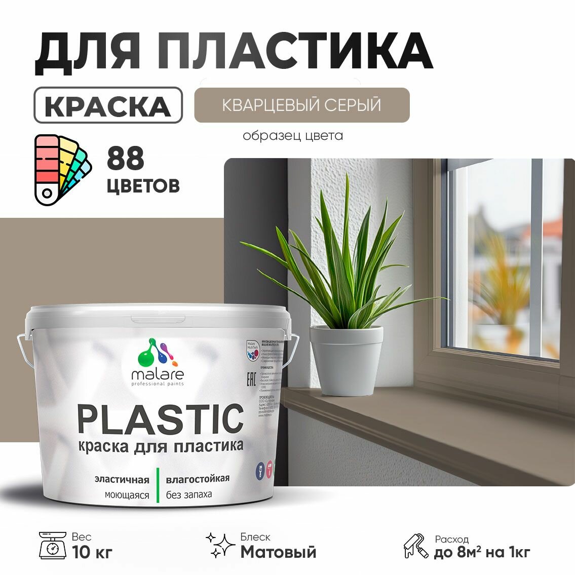 10 цен на Акриловая краска для пластика Malare Plastic для пенопласта ПВХ сайдинга, для подоконников и откосов, быстросохнущая без запаха, матовая, кварцевый серый, 10 кг