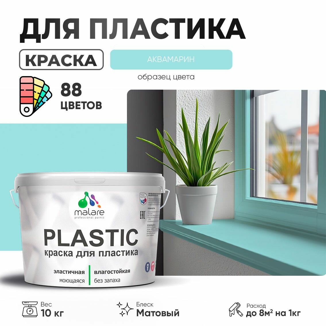 10 цен на Акриловая краска для пластика Malare Plastic для пенопласта ПВХ сайдинга, для подоконников и откосов, быстросохнущая без запаха, матовая, аквамарин, 10 кг