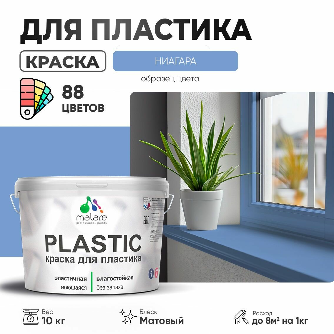 10 цен на Акриловая краска для пластика Malare Plastic для пенопласта ПВХ сайдинга, для подоконников и откосов, быстросохнущая без запаха, матовая, ниагара, 10 кг