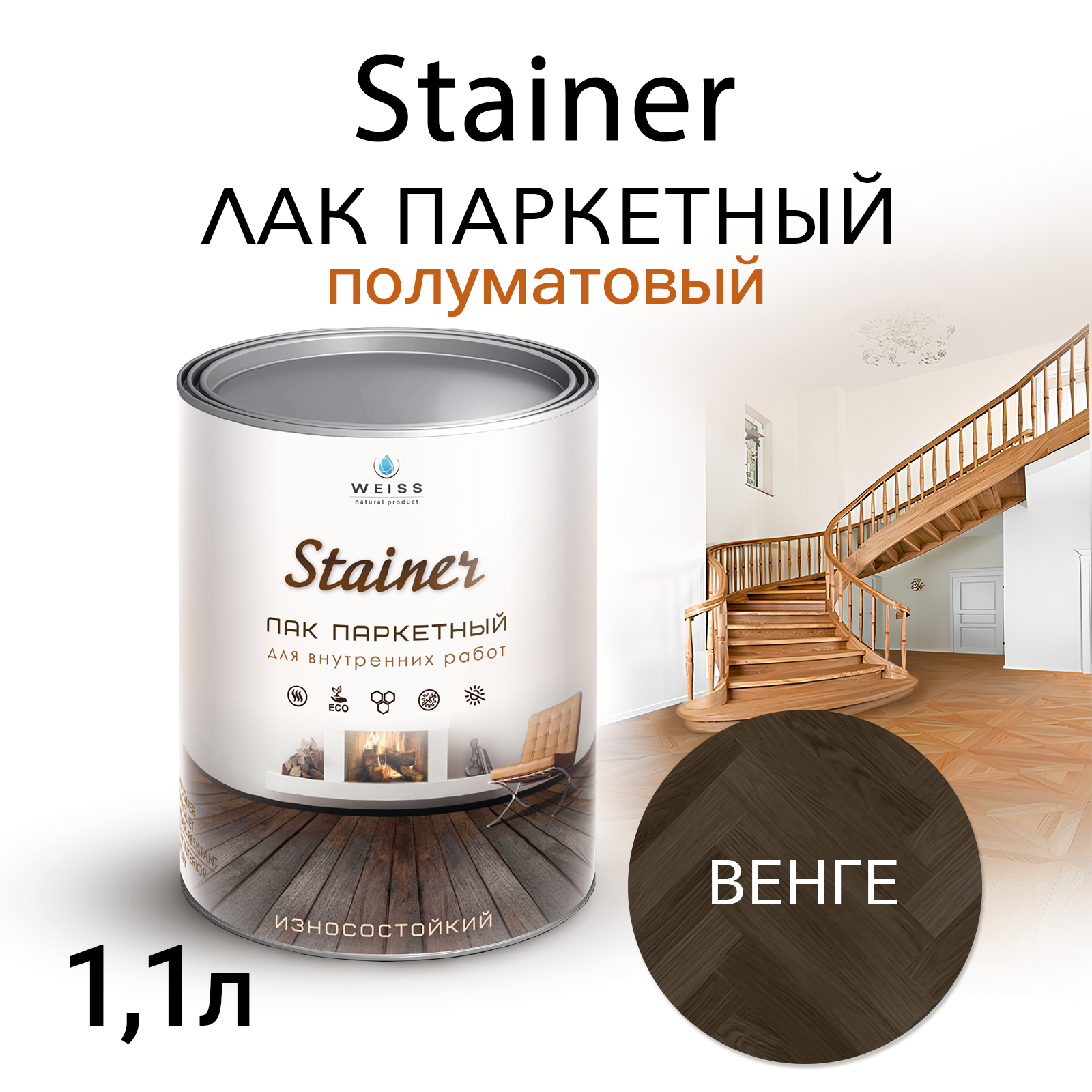 10 цен на Лак строительный паркетный венге полуматовый, для пола, для паркета, для стен, для мебели, для дерева Weiss natural product без запаха самовыравнивающийся 1.1л
