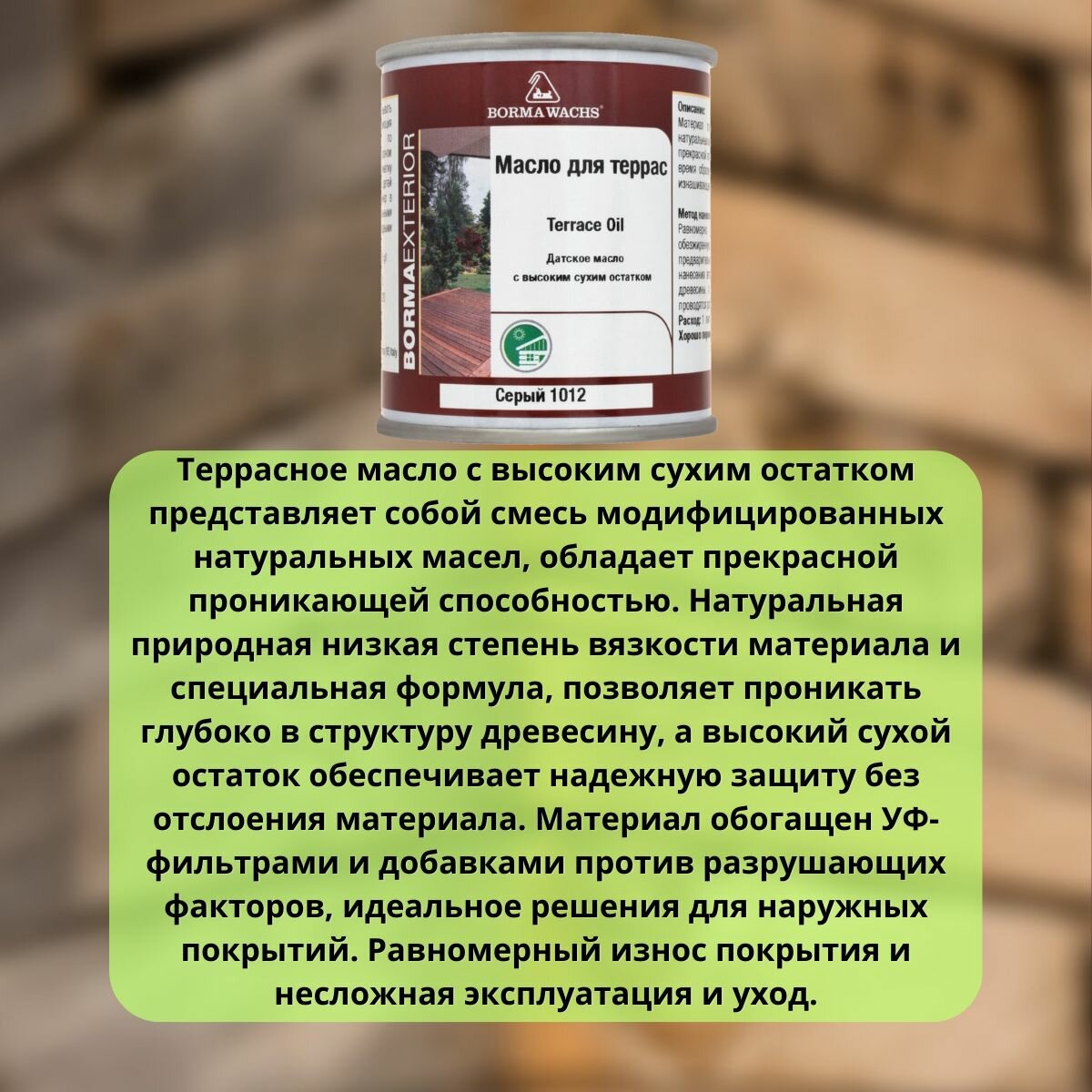 Масло для дерева/террас датское BORMA WACHS 125мл., 1012 Серый 4971IL-1012.125 информация: