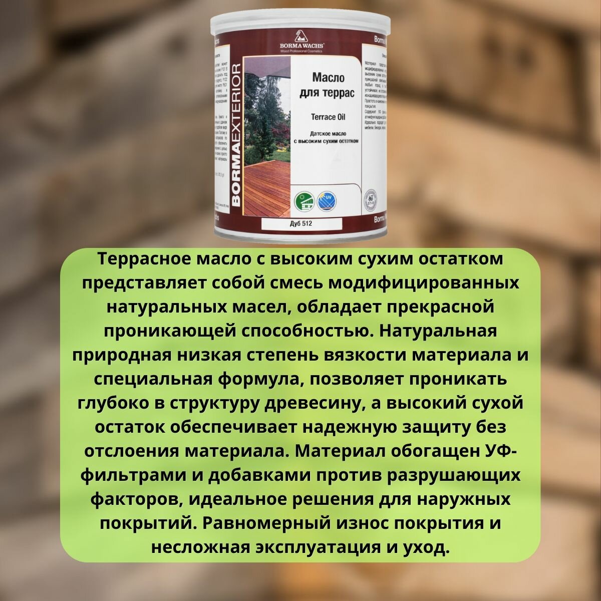 Масло для дерева BORMA WACHS Terrace Oil , Цветное масло для террас , Датское с высоким сухим остатком, Цвет 173 ТИК 0,125мл 920 ₽