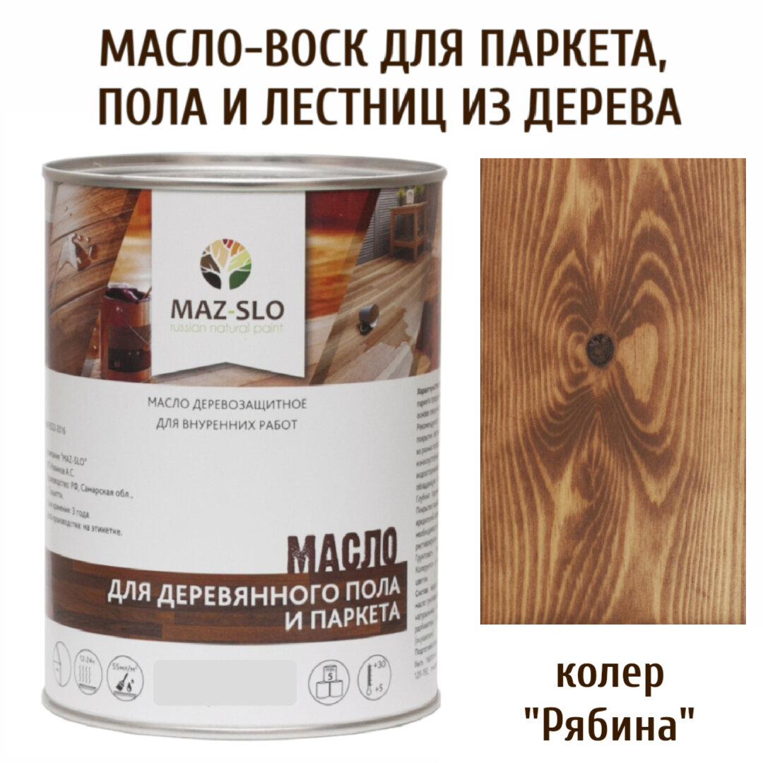 Масло для деревянного пола, паркета, лестниц MAZ-SLO, цвет "Рябина", 1 литр информация: