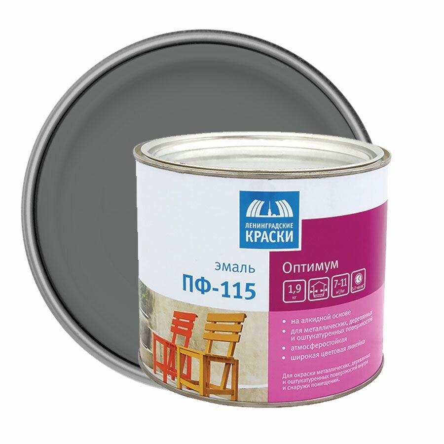 Эмаль ПФ-115 Ленинградские краски Оптимум, алкидная, глянцевая, 1,9 кг, шаровая, 1шт информация:
