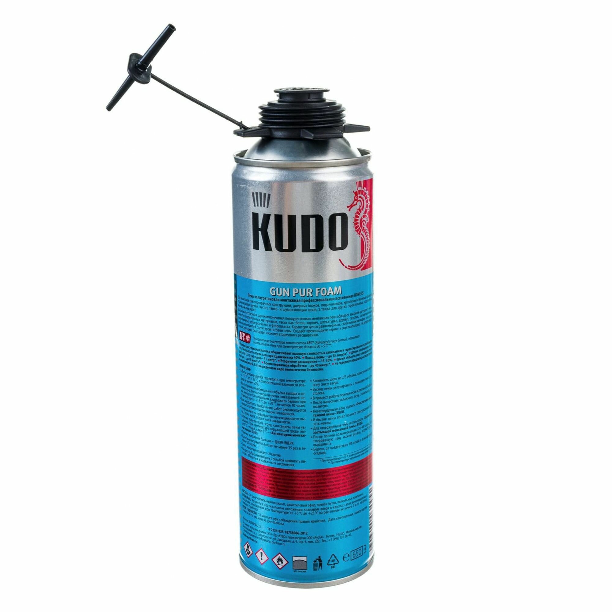 Пена полиуретановая монтажная проф.KUDO HOME 45 всесезонная с клапаном безотказной констр 1000 мл KUDO KUPHP10U45