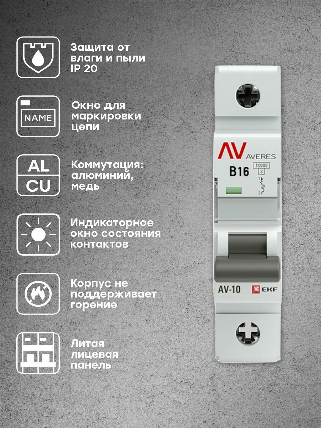 Автоматический выключатель AV-10 1P 16A (B) 10kA, EKF AVERES информация: