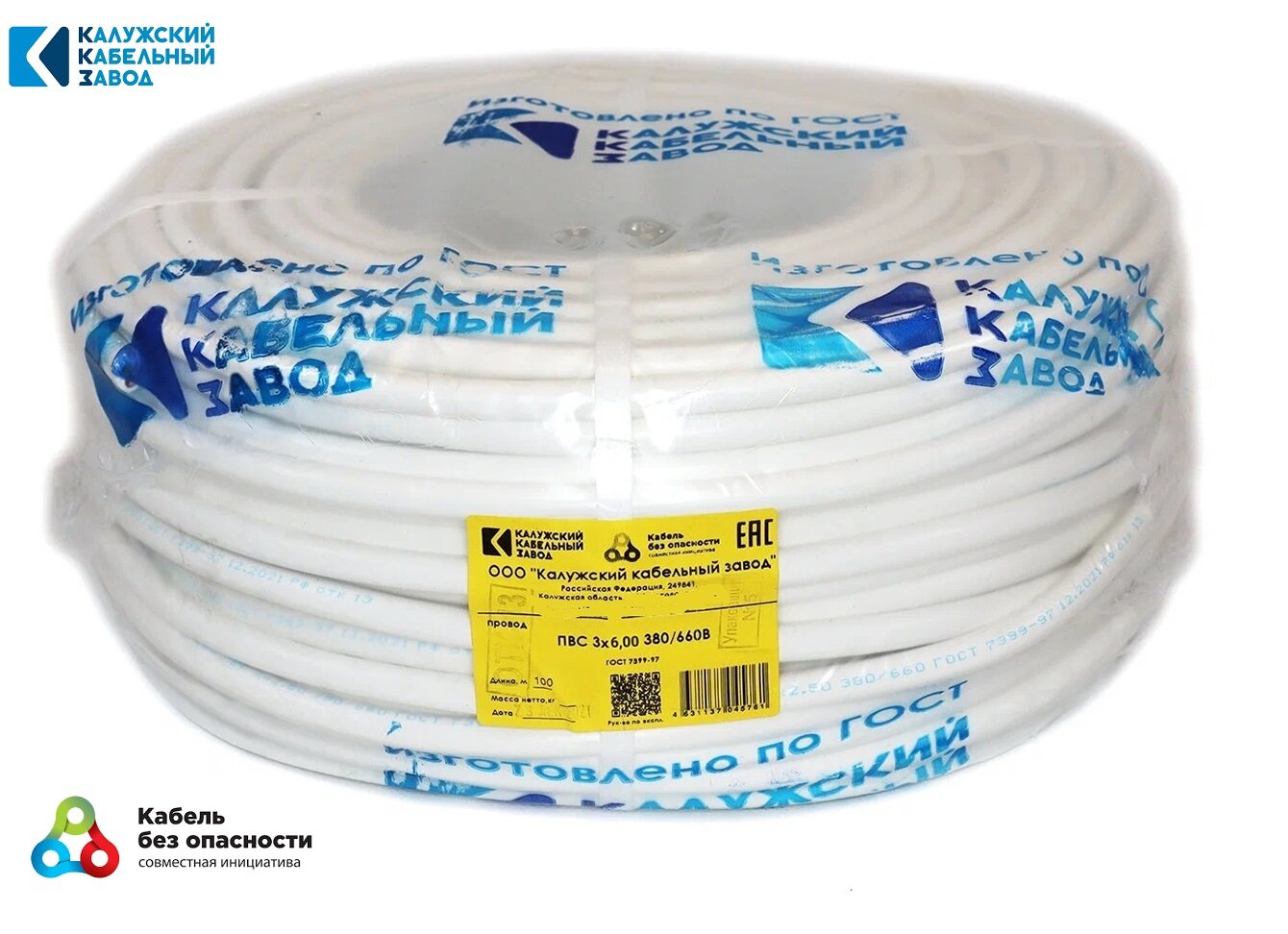 Отзывы на Провод ПВС 3х6 ГОСТ Калужский Кабельный Завод (Белый) 5 метров