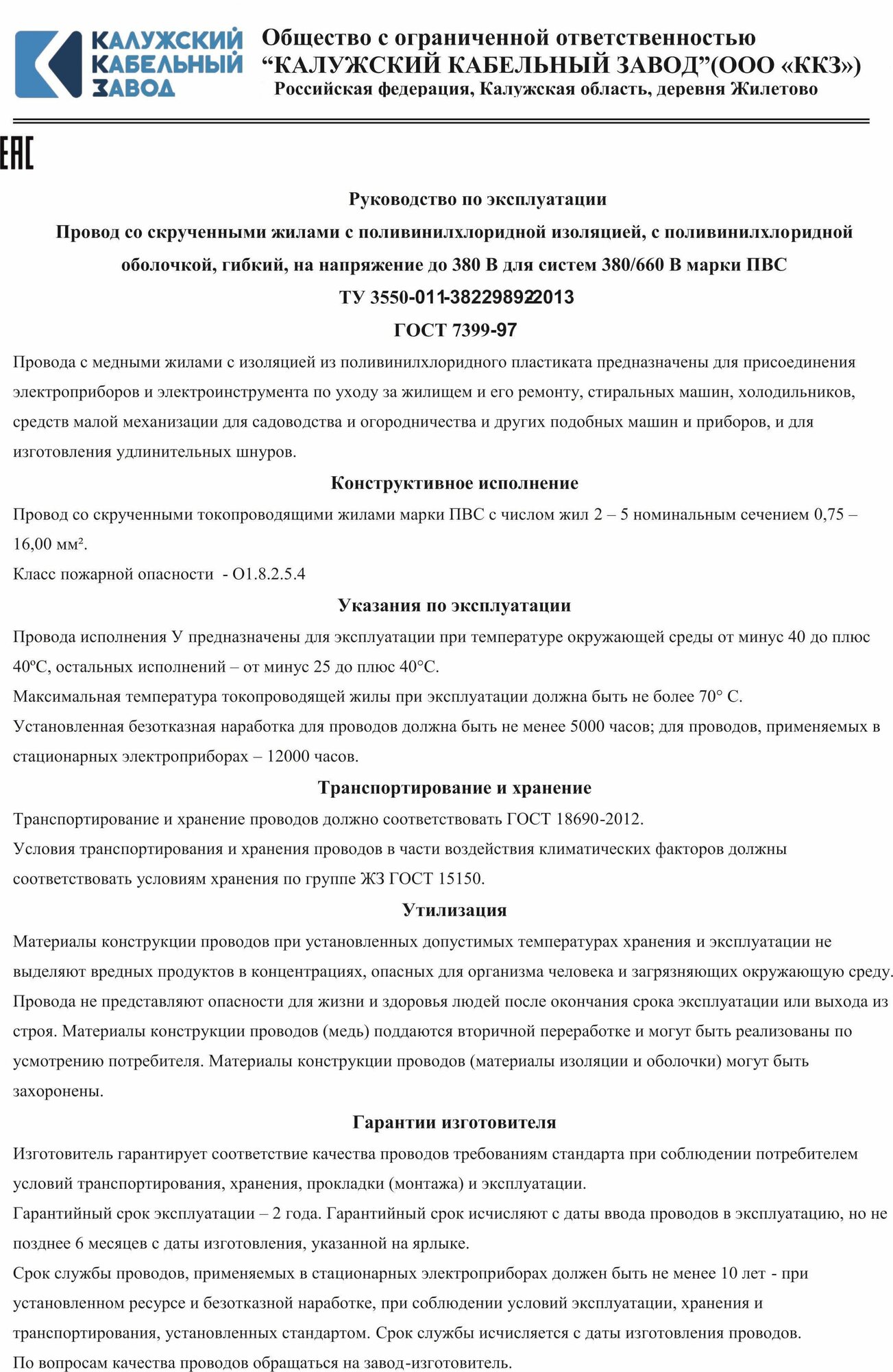 | Производитель | КАЛУЖСКИЙ КАБЕЛЬНЫЙ ЗАВОД |