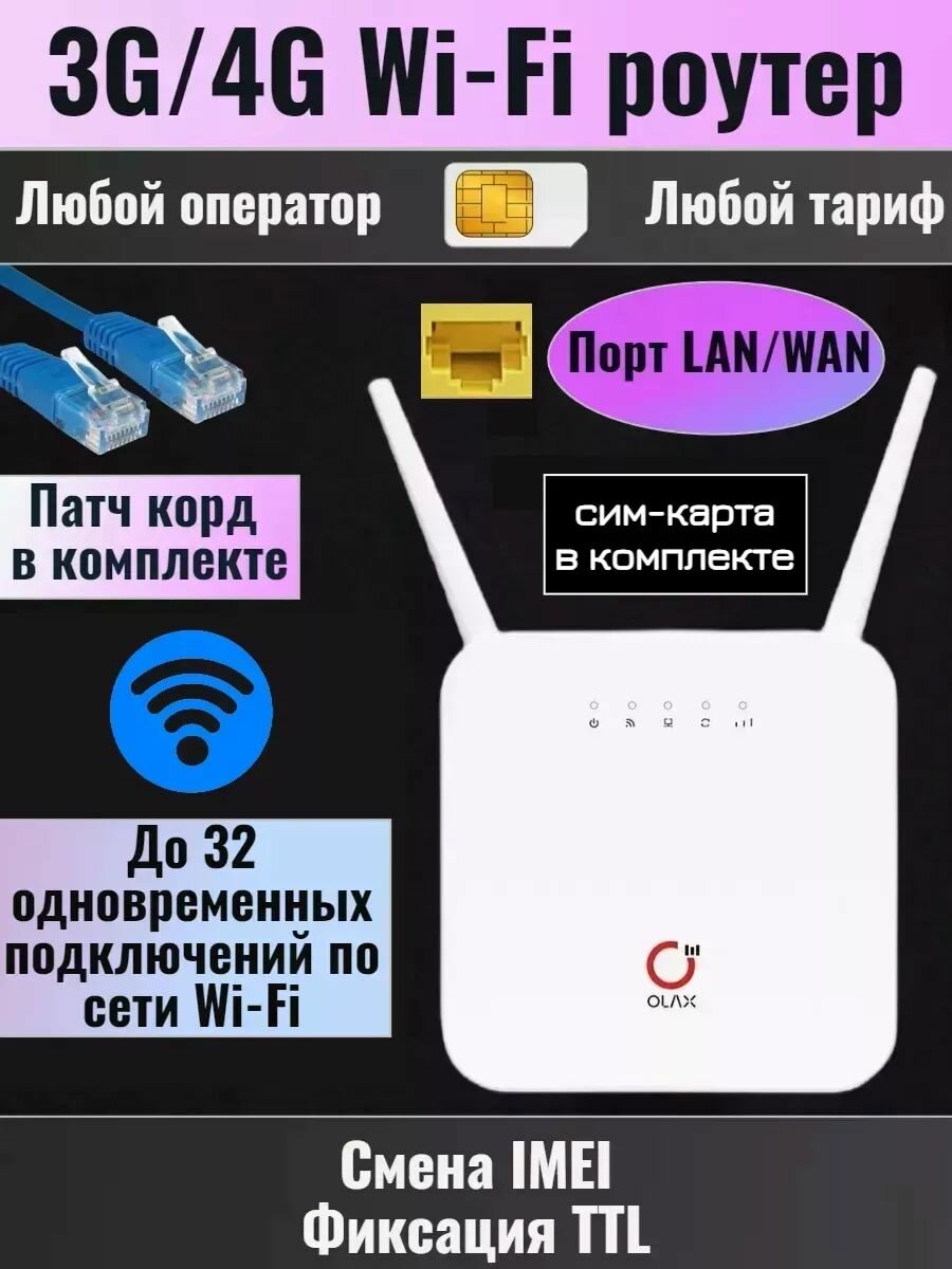 10 цен на 4G WI-FI роутер Olax AX6 ( AX 6 ) Pro, 2 антенны 2*5dBi, LAN порт 1000Мбит/сек