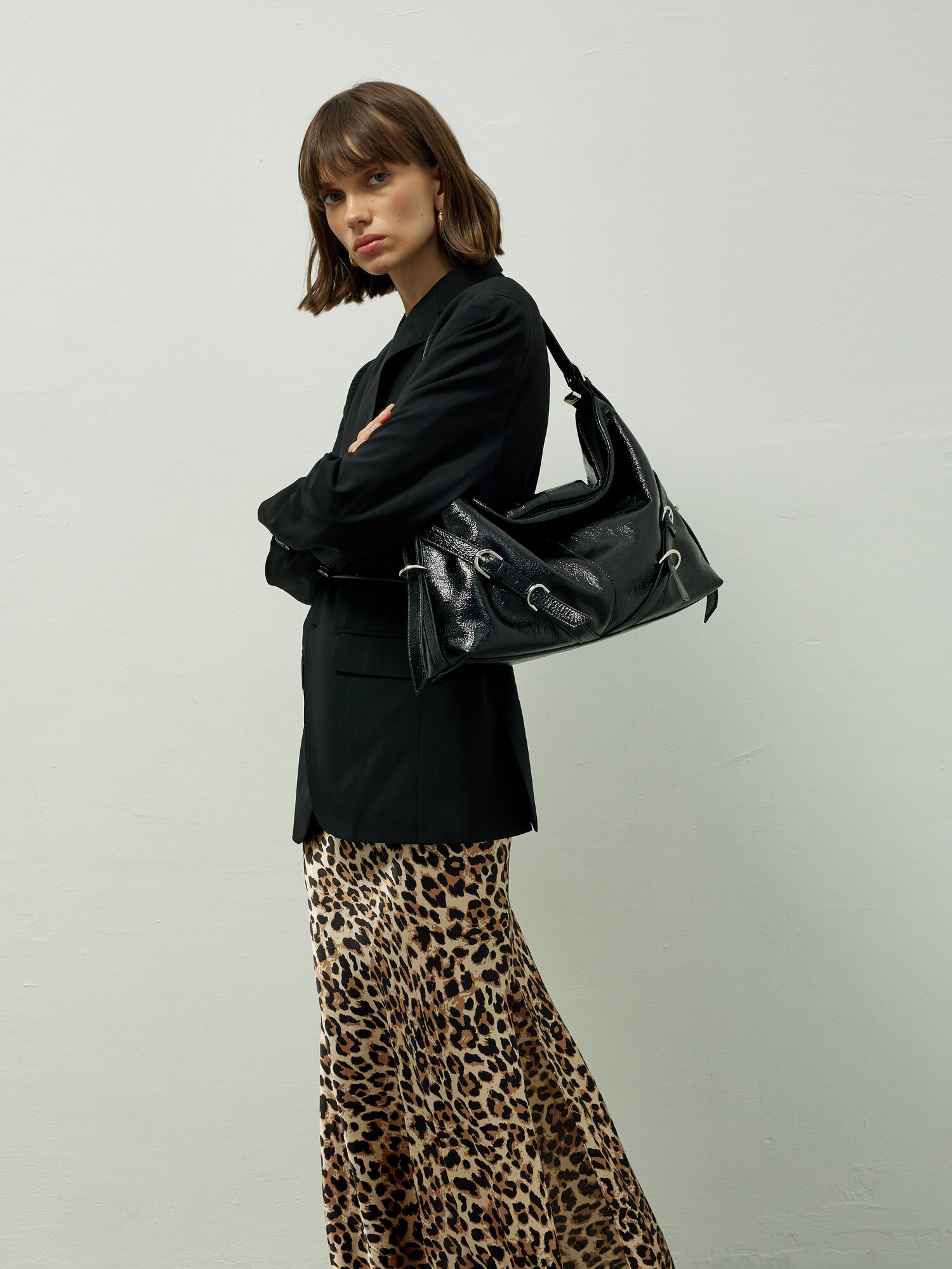 Сумка женская хобо AFINA 739 из натуральной кожи лаковая черная информация: