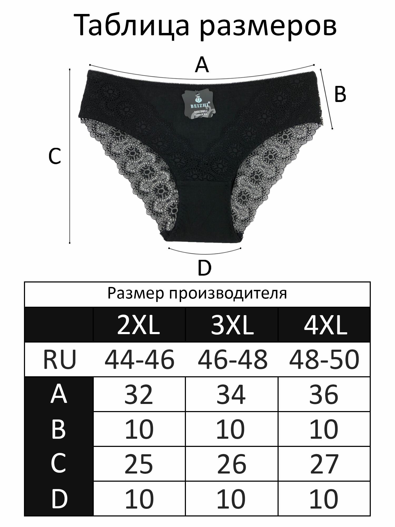 Трусы женские "Beizhi" N.7602, 4XL Черный, Белый, 2 шт., fbo 795 ₽