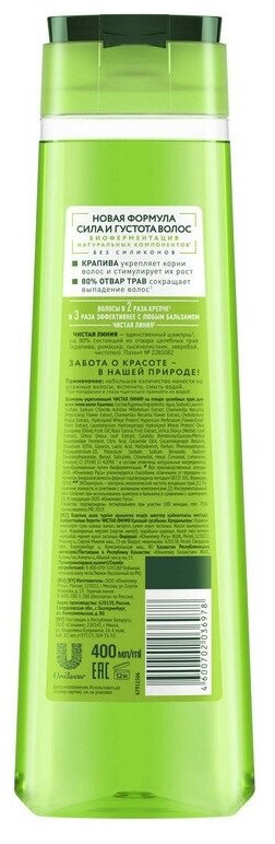 Чистая Линия шампунь укрепляющий сила и густота для всех типов волос с экстрактом крапивы, без силиконов 400 мл