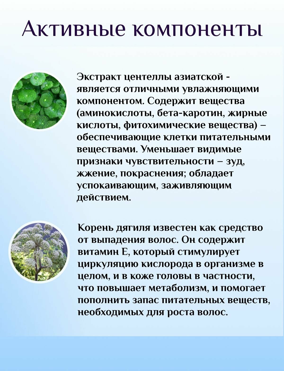 | Активный ингредиент | аллантоин / аминокислоты / аргинин / бетаин / витамин E / витамины группы B / гиалуроновая кислота / глицерин / глицин / керамиды / кератин / коллаген / комплекс витаминов / креатин / лецитин / лимонная кислота / маточное молочко / ментол / мочевина / пантенол / пробиотики / протеины / протеины пшеницы / салициловая кислота / яблочный уксус |