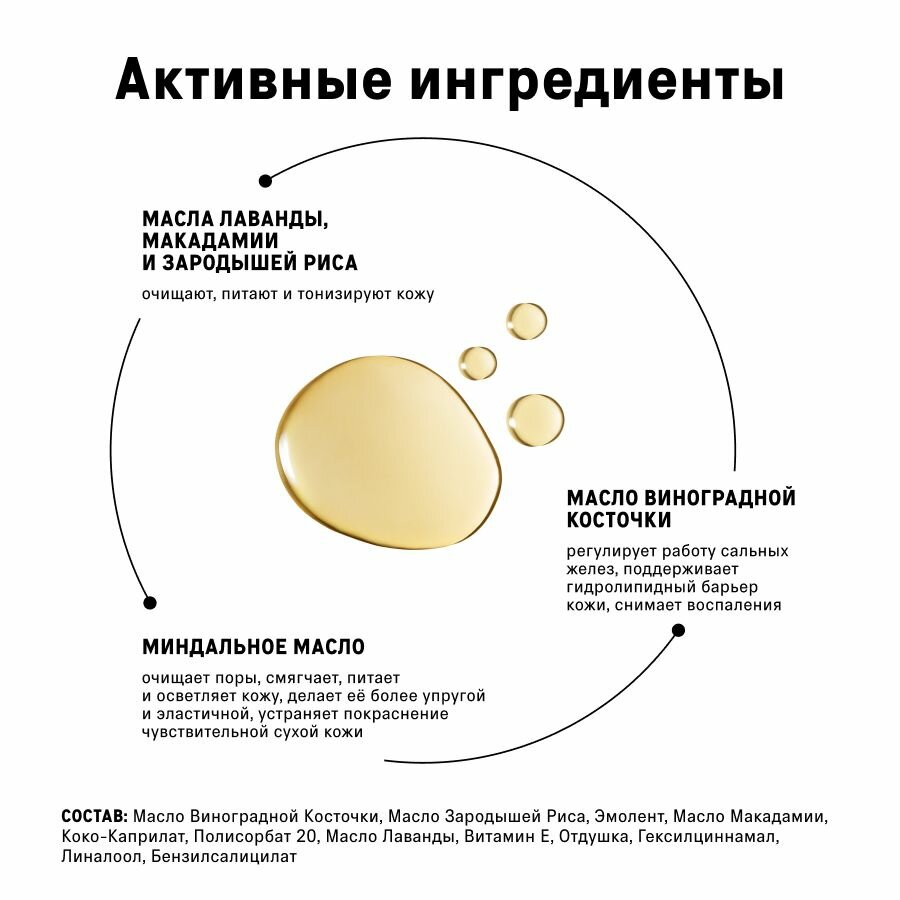 | Масла и экстракты | масло косточек винограда / масло лаванды / масло макадамии |