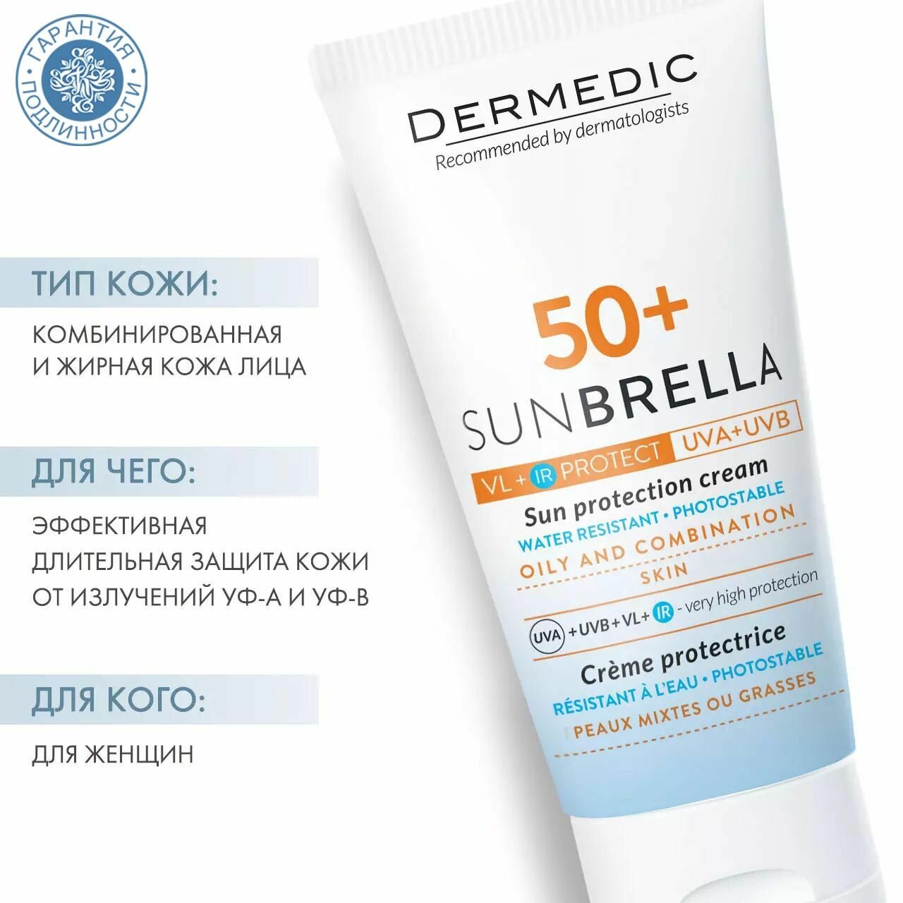 Dermedic Sunbrella Солнцезащитный крем SPF 50+ для жирной кожи и комбинированной кожи 50мл информация: