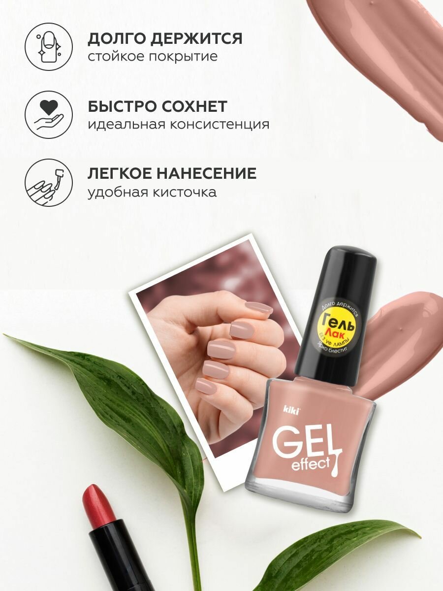 Лак для ногтей kiki Gel Effect тон 77 бежевый, с гелевым эффектом без уф-лампы, цветной глянцевый маникюр и педикюр, 6 мл 164 ₽