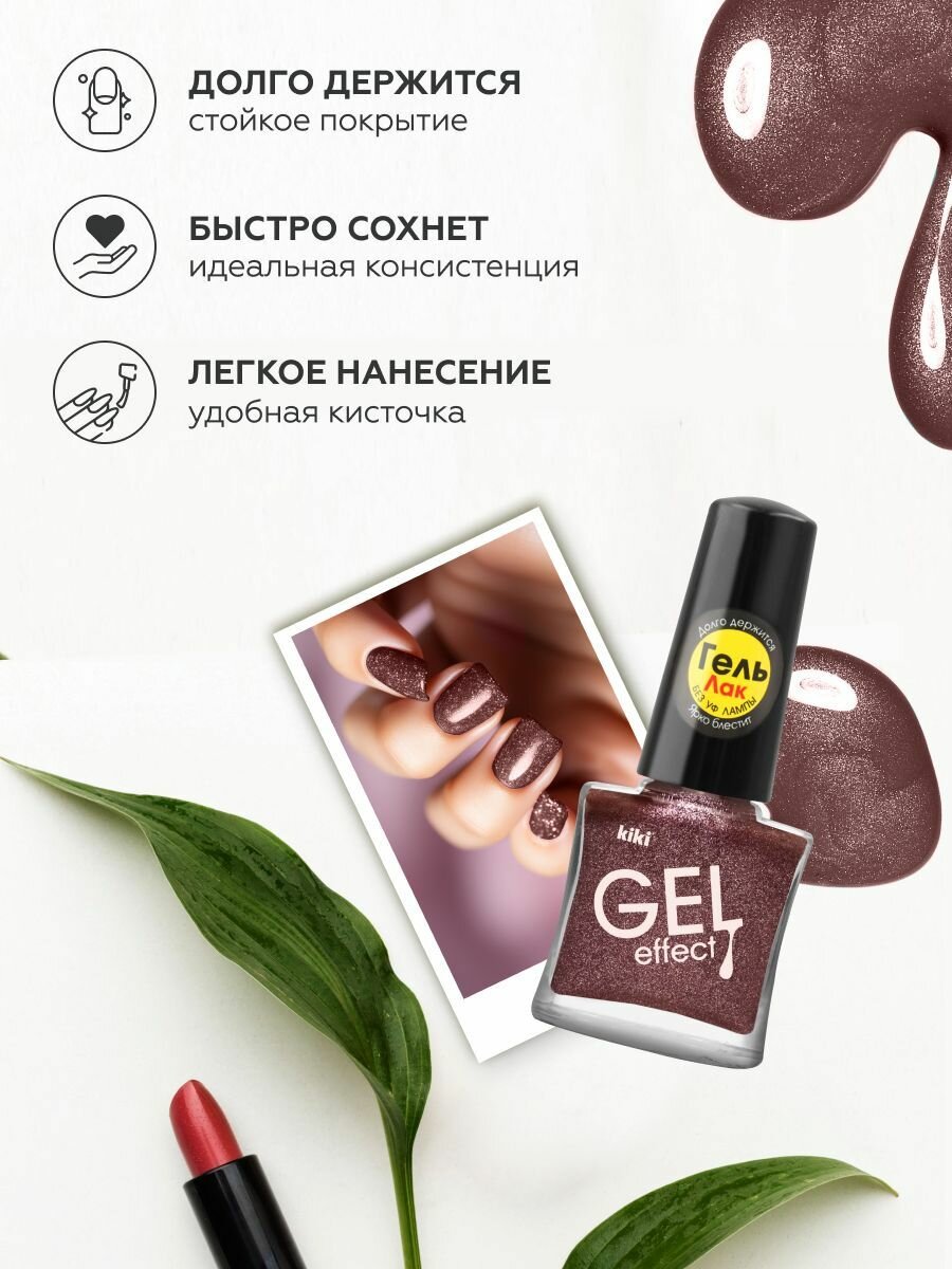 Лак для ногтей kiki Gel Effect тон 13 декаданс с гелевым эффектом без уф-лампы, цветной глянцевый маникюр и педикюр, кики, 6 мл 176 ₽